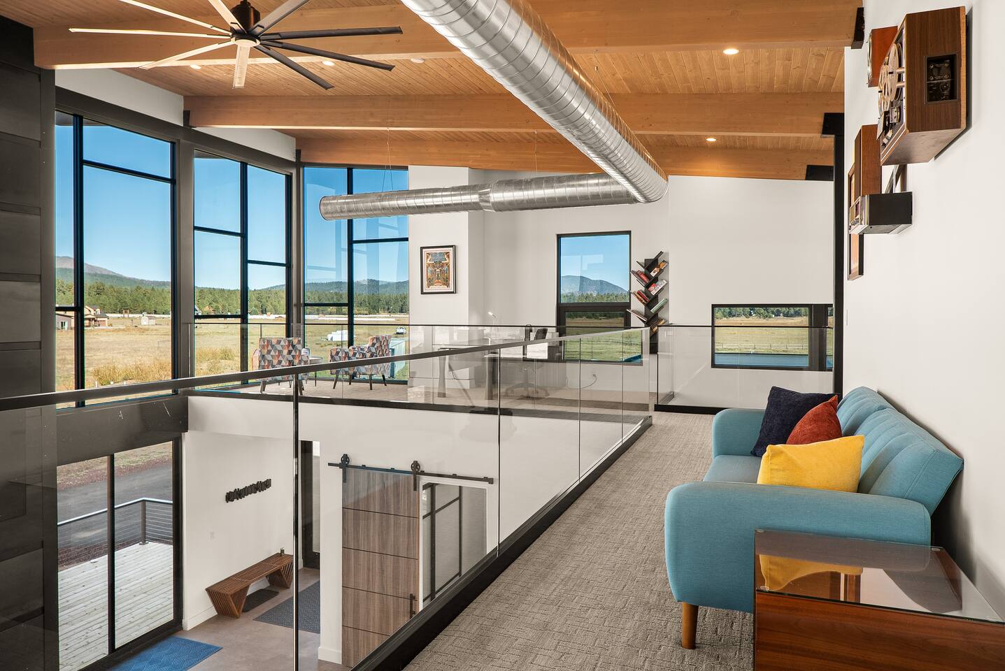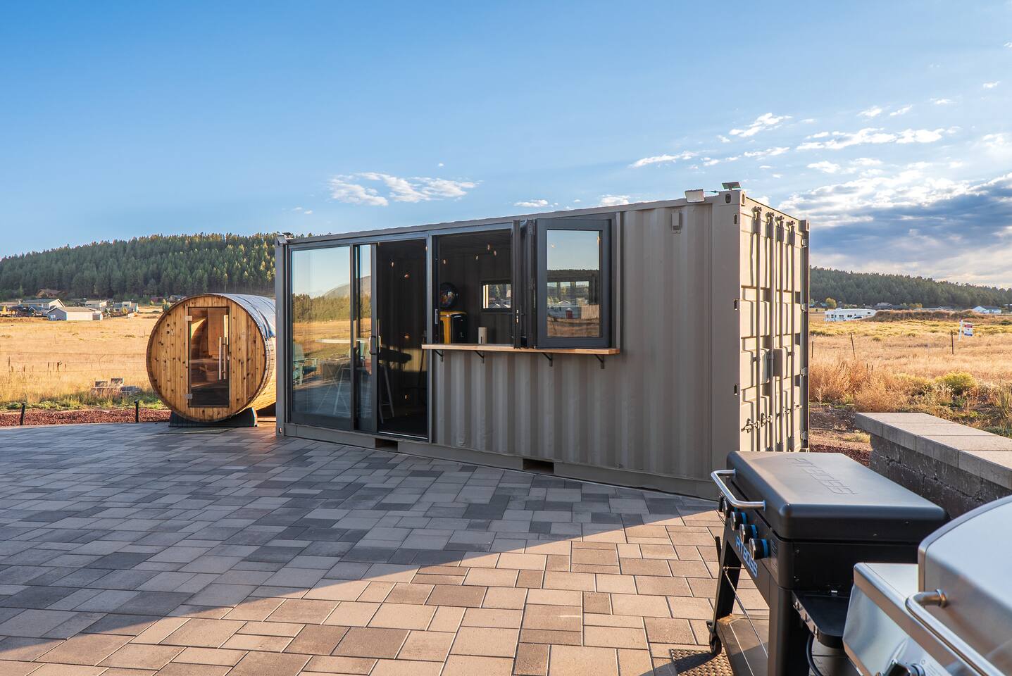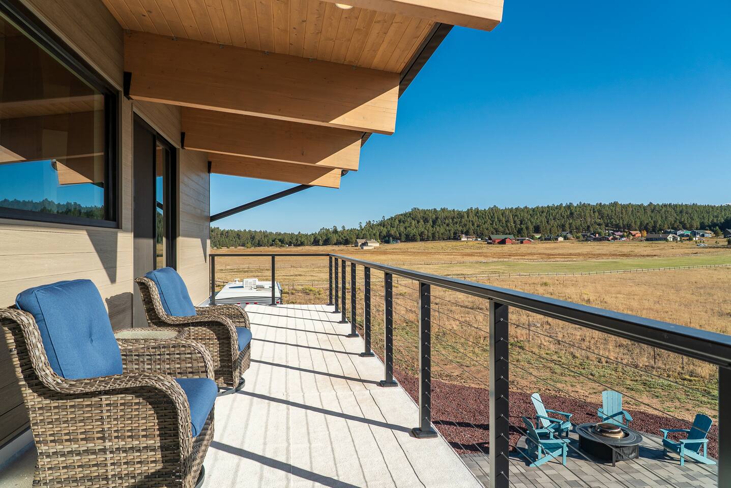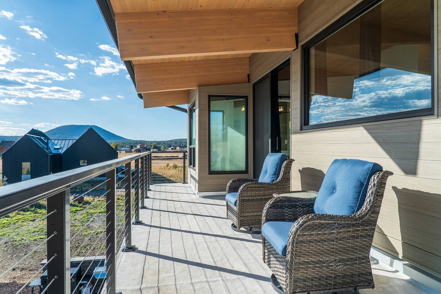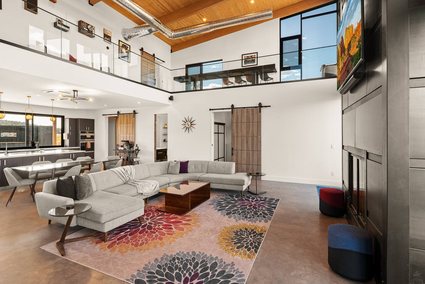 Experience an amazing mountain getaway at this modern mountain home, where towering 30-foot windows and glass railings bring the spectacular Flagstaff scenery indoors. The open and bright main level is designed for making memories and enjoying your time together. Relax and recharge at our modern 3-bedroom mountain retreat, where panoramic San Francisco Peak views are framed by towering 30-foot windows. This bright, open-concept home is designed for making memories, with a whole-home sound system providing the perfect soundtrack for your getaway. LIVING & ENTERTAINMENT Open-concept living area with a large sectional sofa. 85" smart TV for movie nights. Classic video arcade and shuffleboard table for friendly competition. Fully equipped kitchen with a large island and a sliding window that opens to an outdoor bar. OUTDOOR OASIS Private 2-acre property. Relaxing barrel sauna. Cozy fire pit for evening stories. Outdoor games including cornhole, frisbee golf and basketball hoop. Converted Connex box lounge with its own bar and sound system. Expansive starlit decks for unforgettable evenings. BEDROOMS & BATHROOMS Upstairs Primary Suite: King bed, ensuite bathroom, TV, and a private 40-foot deck with swivel rocking chairs. Downstairs Guest Bedroom: Comfortable queen bed and closet space. Downstairs Bunk Room: Twin-over-full bunk bed with a twin trundle, TV, and a full-length mirror. FAMILY-FRIENDLY AMENITIES Pack ’n play/travel crib High chair Children's books and toys WORK FROM HERE Dedicated workspace and fast Wi-Fi make this home ideal for remote work or longer stays. **Sorry - we love our furry pets, but they are not allowed ** All space accessible by guests with exception to 2 locked owner closet/ storage spaces. TPT 21573458 STR 25-0647