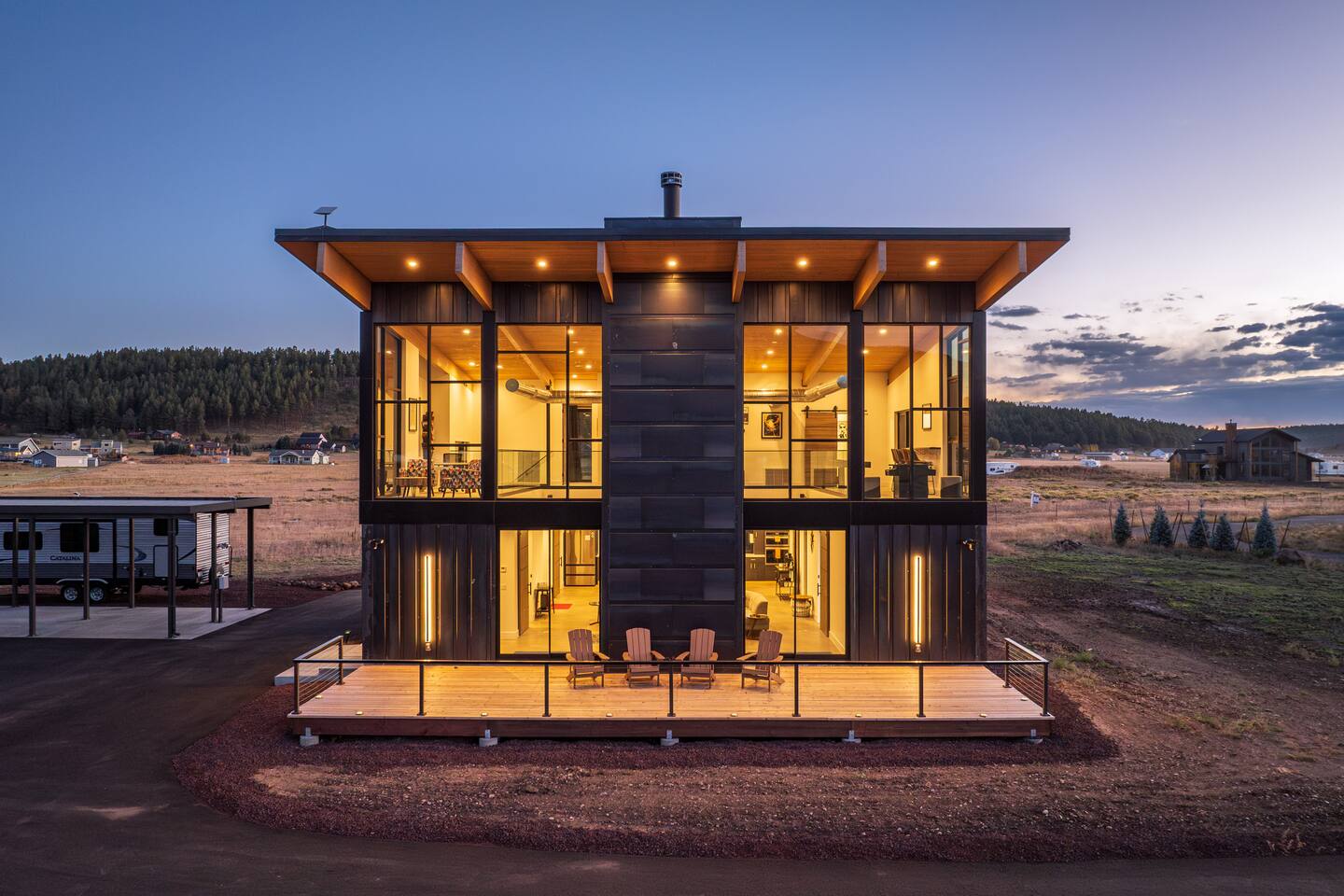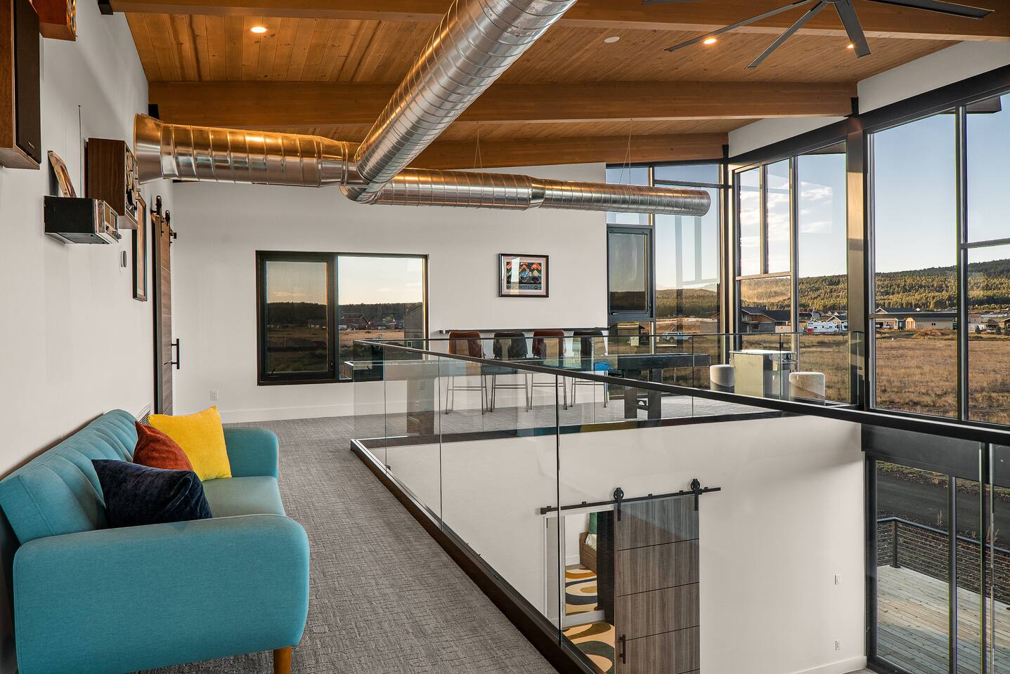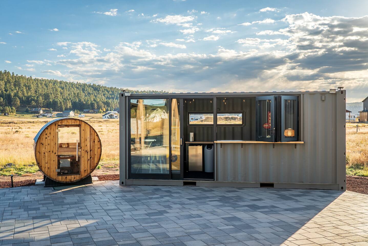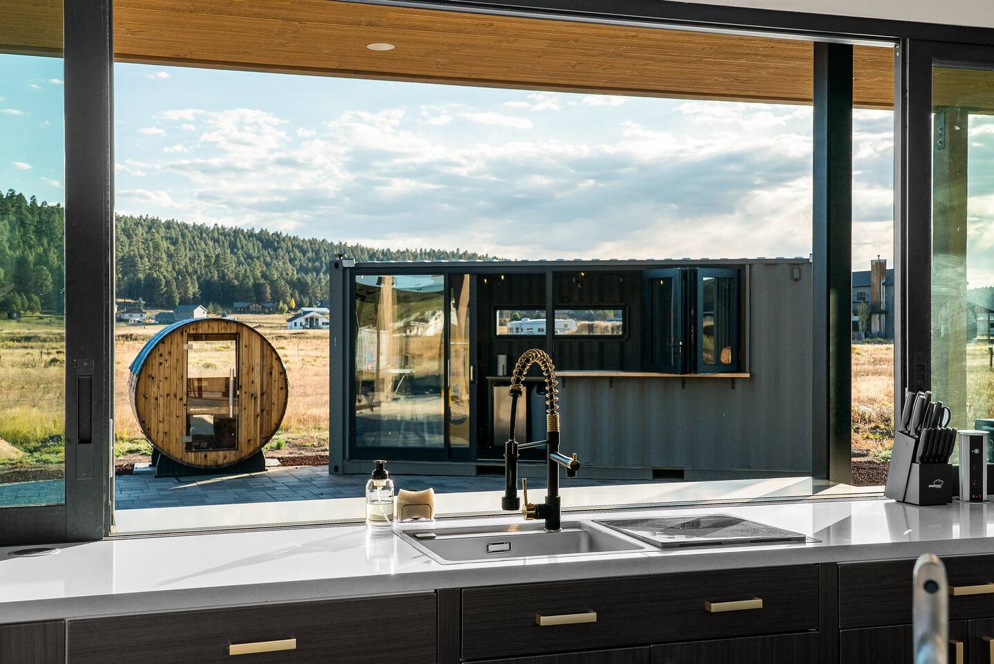 Experience an amazing mountain getaway at this modern mountain home, where towering 30-foot windows and glass railings bring the spectacular Flagstaff scenery indoors. The open and bright main level is designed for making memories and enjoying your time together. Relax and recharge at our modern 3-bedroom mountain retreat, where panoramic San Francisco Peak views are framed by towering 30-foot windows. This bright, open-concept home is designed for making memories, with a whole-home sound system providing the perfect soundtrack for your getaway. LIVING & ENTERTAINMENT Open-concept living area with a large sectional sofa. 85" smart TV for movie nights. Classic video arcade and shuffleboard table for friendly competition. Fully equipped kitchen with a large island and a sliding window that opens to an outdoor bar. OUTDOOR OASIS Private 2-acre property. Relaxing barrel sauna. Cozy fire pit for evening stories. Outdoor games including cornhole, frisbee golf and basketball hoop. Converted Connex box lounge with its own bar and sound system. Expansive starlit decks for unforgettable evenings. BEDROOMS & BATHROOMS Upstairs Primary Suite: King bed, ensuite bathroom, TV, and a private 40-foot deck with swivel rocking chairs. Downstairs Guest Bedroom: Comfortable queen bed and closet space. Downstairs Bunk Room: Twin-over-full bunk bed with a twin trundle, TV, and a full-length mirror. FAMILY-FRIENDLY AMENITIES Pack ’n play/travel crib High chair Children's books and toys WORK FROM HERE Dedicated workspace and fast Wi-Fi make this home ideal for remote work or longer stays. **Sorry - we love our furry pets, but they are not allowed ** All space accessible by guests with exception to 2 locked owner closet/ storage spaces. TPT 21573458 STR 25-0647