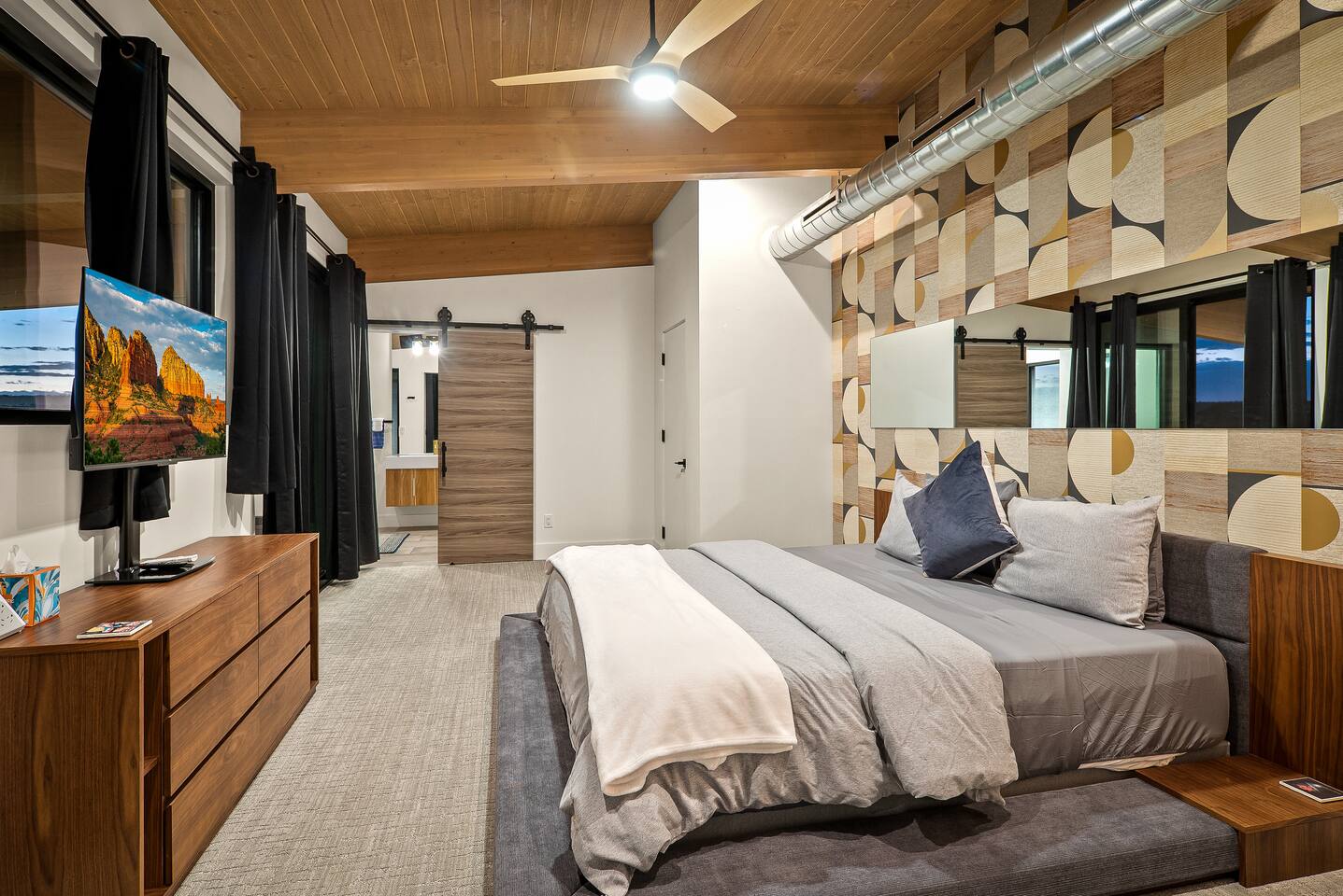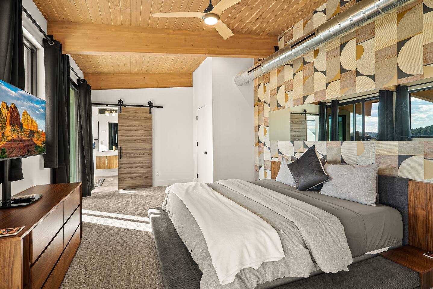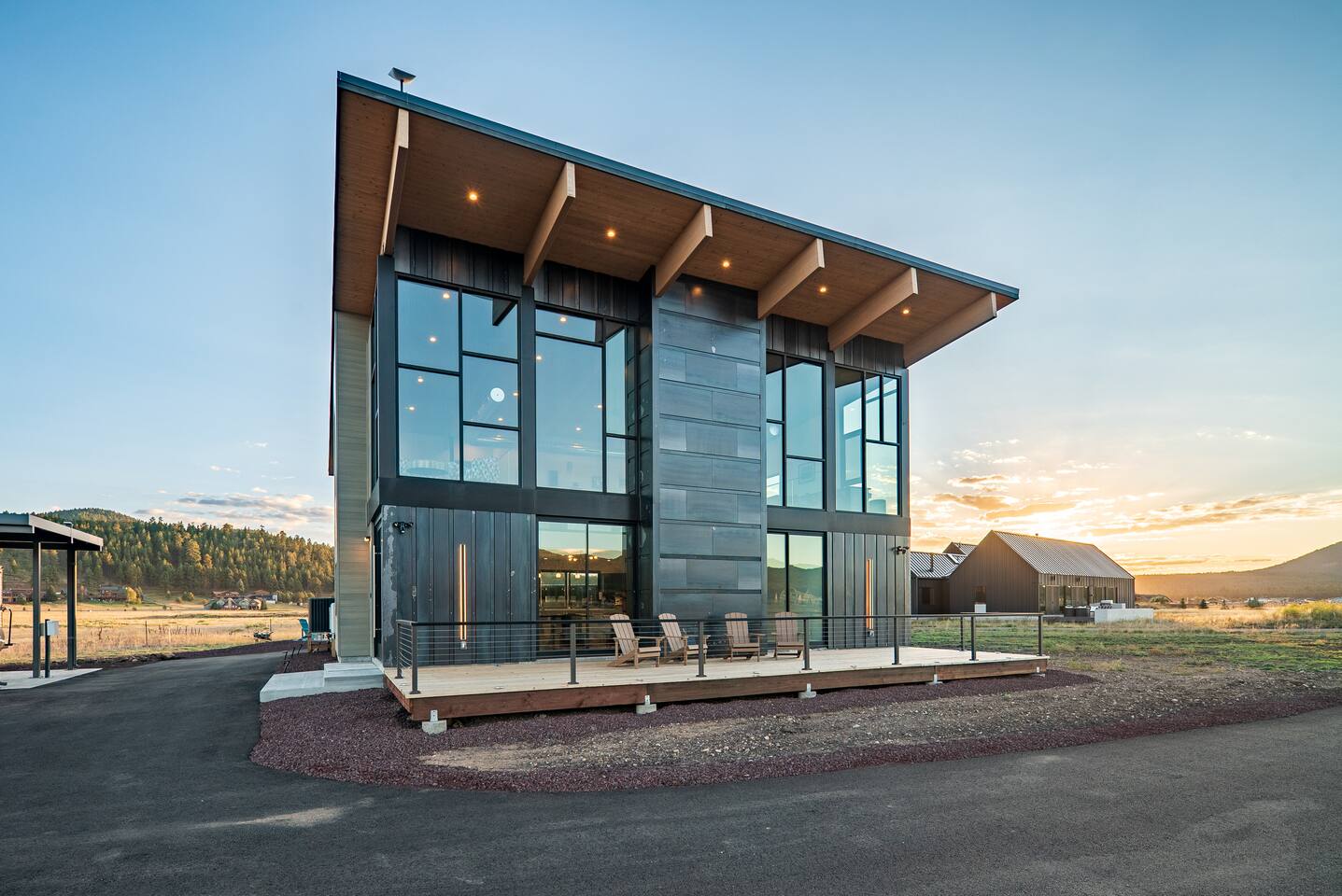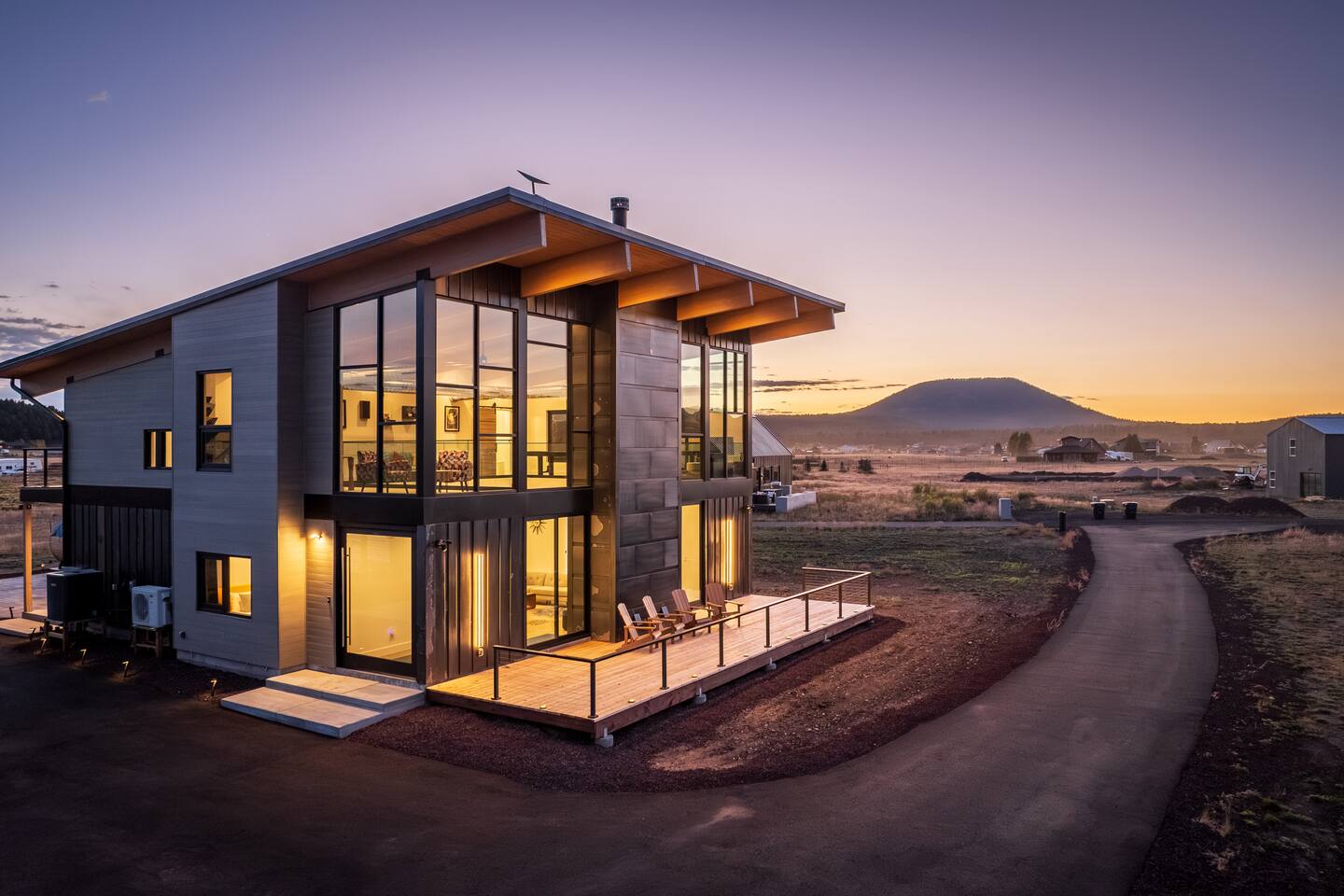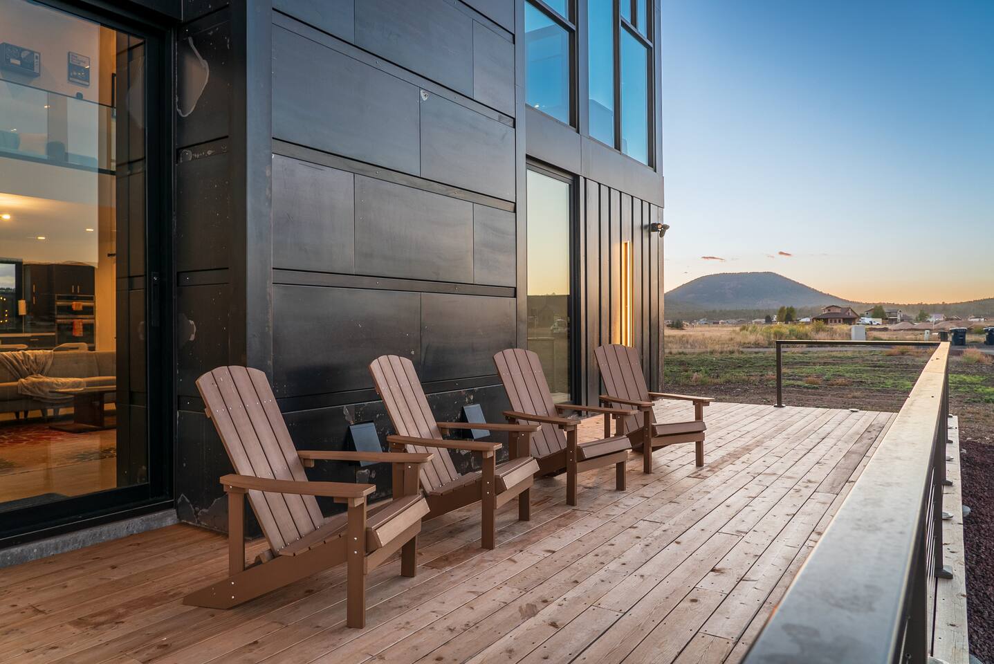 Experience an amazing mountain getaway at this modern mountain home, where towering 30-foot windows and glass railings bring the spectacular Flagstaff scenery indoors. The open and bright main level is designed for making memories and enjoying your time together. Relax and recharge at our modern 3-bedroom mountain retreat, where panoramic San Francisco Peak views are framed by towering 30-foot windows. This bright, open-concept home is designed for making memories, with a whole-home sound system providing the perfect soundtrack for your getaway. LIVING & ENTERTAINMENT Open-concept living area with a large sectional sofa. 85" smart TV for movie nights. Classic video arcade and shuffleboard table for friendly competition. Fully equipped kitchen with a large island and a sliding window that opens to an outdoor bar. OUTDOOR OASIS Private 2-acre property. Relaxing barrel sauna. Cozy fire pit for evening stories. Outdoor games including cornhole, frisbee golf and basketball hoop. Converted Connex box lounge with its own bar and sound system. Expansive starlit decks for unforgettable evenings. BEDROOMS & BATHROOMS Upstairs Primary Suite: King bed, ensuite bathroom, TV, and a private 40-foot deck with swivel rocking chairs. Downstairs Guest Bedroom: Comfortable queen bed and closet space. Downstairs Bunk Room: Twin-over-full bunk bed with a twin trundle, TV, and a full-length mirror. FAMILY-FRIENDLY AMENITIES Pack ’n play/travel crib High chair Children's books and toys WORK FROM HERE Dedicated workspace and fast Wi-Fi make this home ideal for remote work or longer stays. **Sorry - we love our furry pets, but they are not allowed ** All space accessible by guests with exception to 2 locked owner closet/ storage spaces. TPT 21573458 STR 25-0647