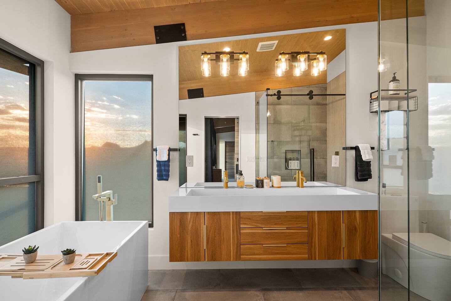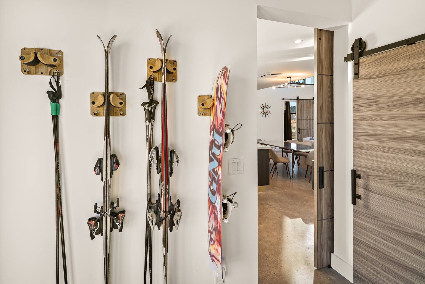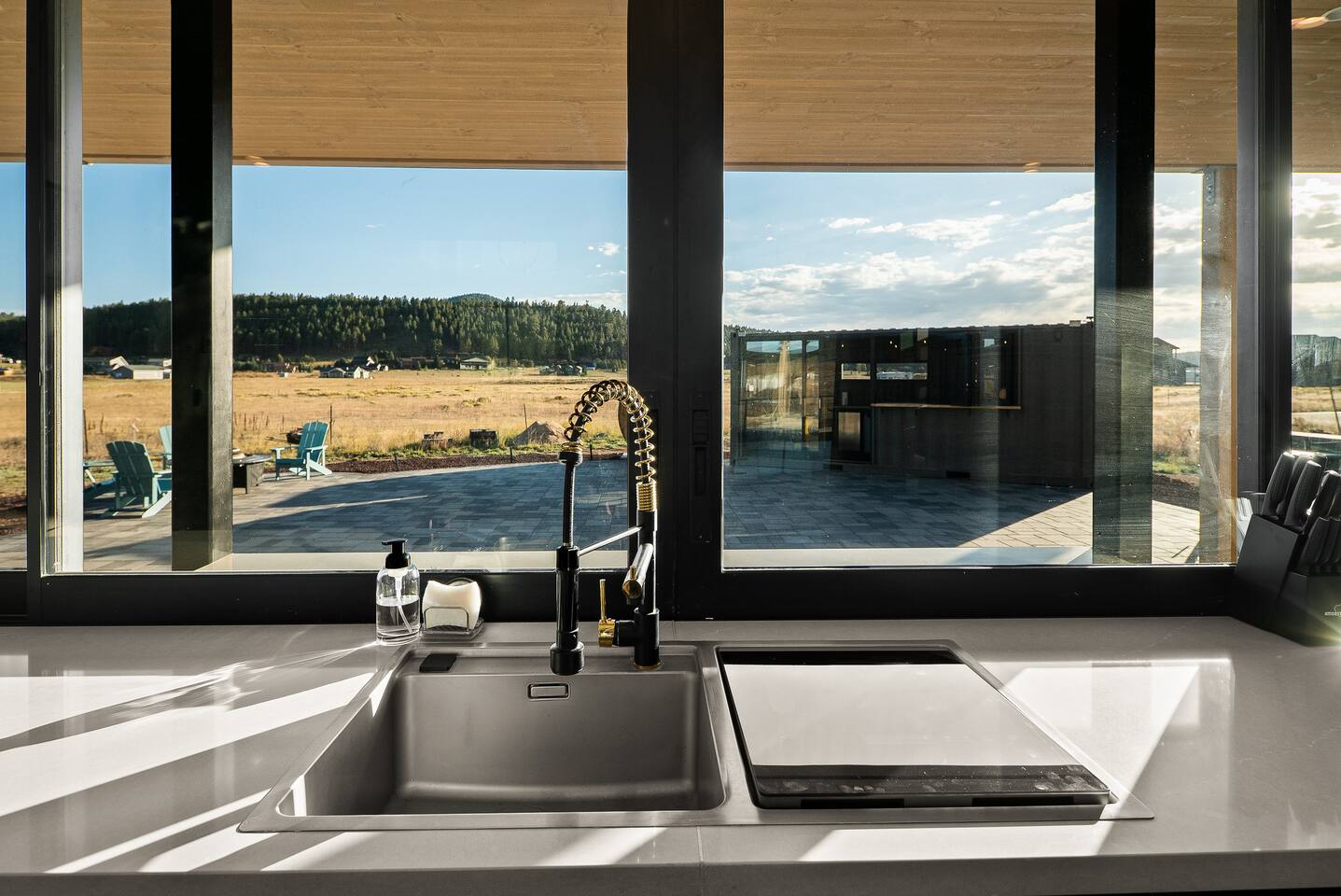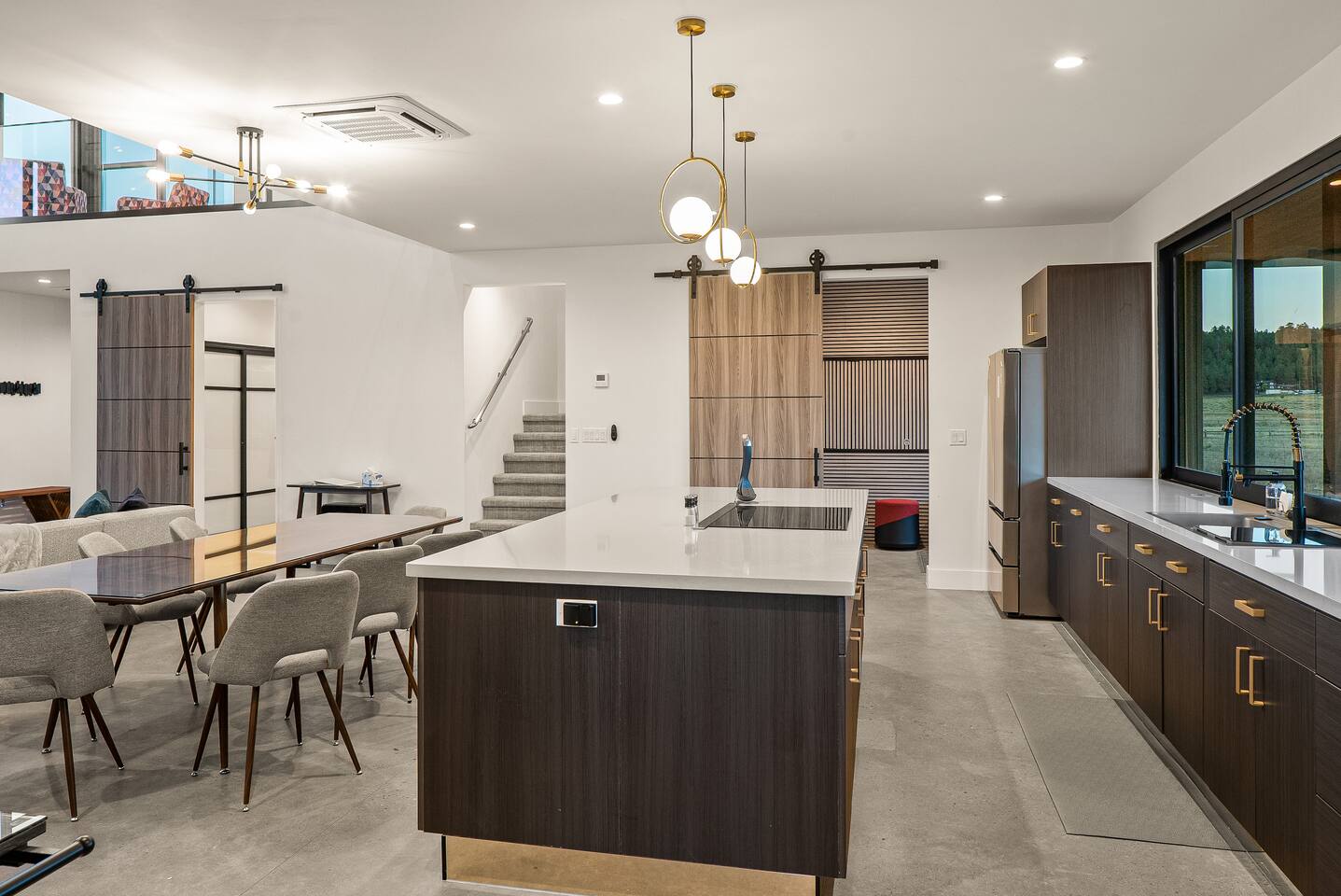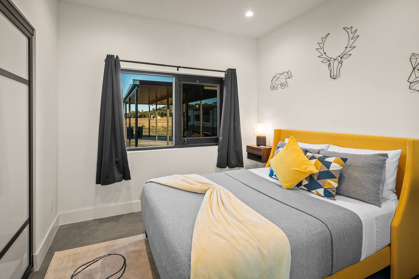 Experience an amazing mountain getaway at this modern mountain home, where towering 30-foot windows and glass railings bring the spectacular Flagstaff scenery indoors. The open and bright main level is designed for making memories and enjoying your time together. Relax and recharge at our modern 3-bedroom mountain retreat, where panoramic San Francisco Peak views are framed by towering 30-foot windows. This bright, open-concept home is designed for making memories, with a whole-home sound system providing the perfect soundtrack for your getaway. LIVING & ENTERTAINMENT Open-concept living area with a large sectional sofa. 85" smart TV for movie nights. Classic video arcade and shuffleboard table for friendly competition. Fully equipped kitchen with a large island and a sliding window that opens to an outdoor bar. OUTDOOR OASIS Private 2-acre property. Relaxing barrel sauna. Cozy fire pit for evening stories. Outdoor games including cornhole, frisbee golf and basketball hoop. Converted Connex box lounge with its own bar and sound system. Expansive starlit decks for unforgettable evenings. BEDROOMS & BATHROOMS Upstairs Primary Suite: King bed, ensuite bathroom, TV, and a private 40-foot deck with swivel rocking chairs. Downstairs Guest Bedroom: Comfortable queen bed and closet space. Downstairs Bunk Room: Twin-over-full bunk bed with a twin trundle, TV, and a full-length mirror. FAMILY-FRIENDLY AMENITIES Pack ’n play/travel crib High chair Children's books and toys WORK FROM HERE Dedicated workspace and fast Wi-Fi make this home ideal for remote work or longer stays. **Sorry - we love our furry pets, but they are not allowed ** All space accessible by guests with exception to 2 locked owner closet/ storage spaces. TPT 21573458 STR 25-0647